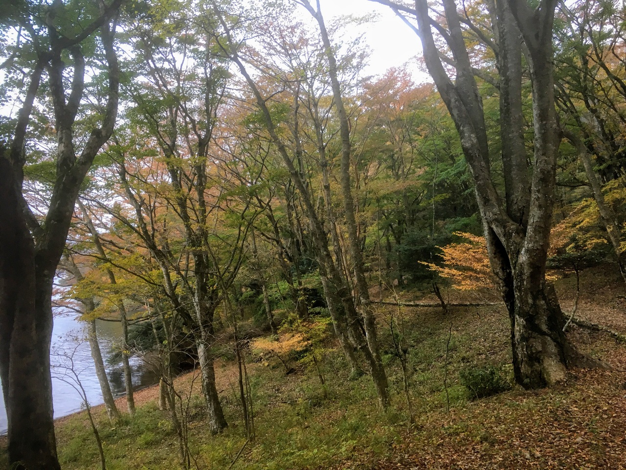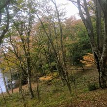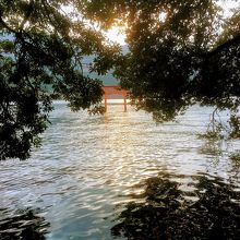 九頭龍の森と言われる、湖畔沿いの森の中に、赤い小さな社殿と、湖面の鳥居だけのものですが、湖も、森も神様が本当にいるんじゃないかと思わせる感じです。