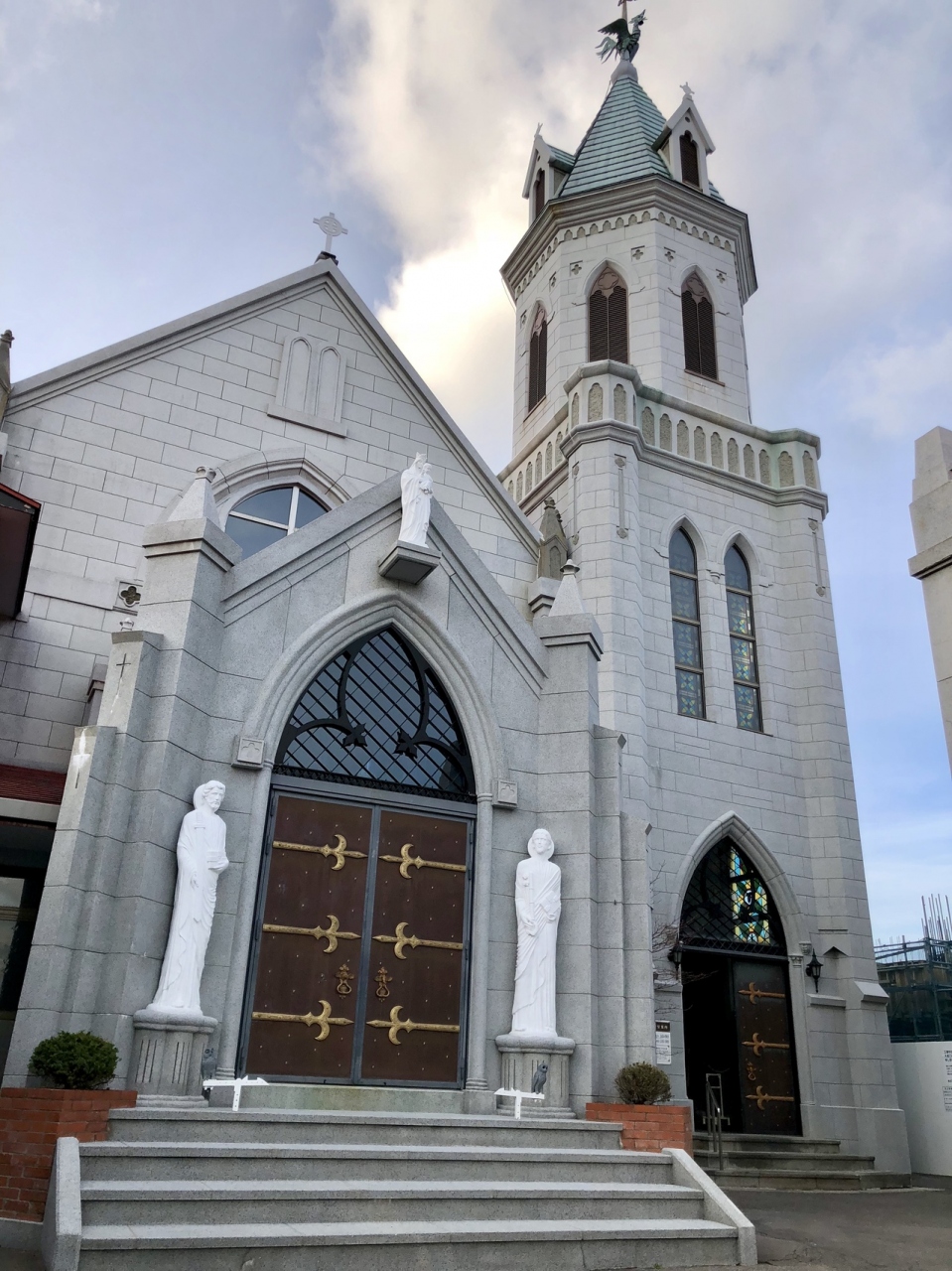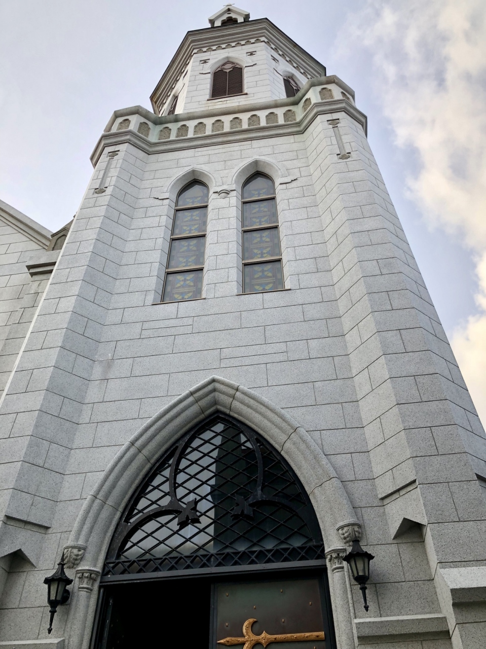 この協会は縦に高さがあるので写真を撮るなら縦に構えないと入りきらないのでは?