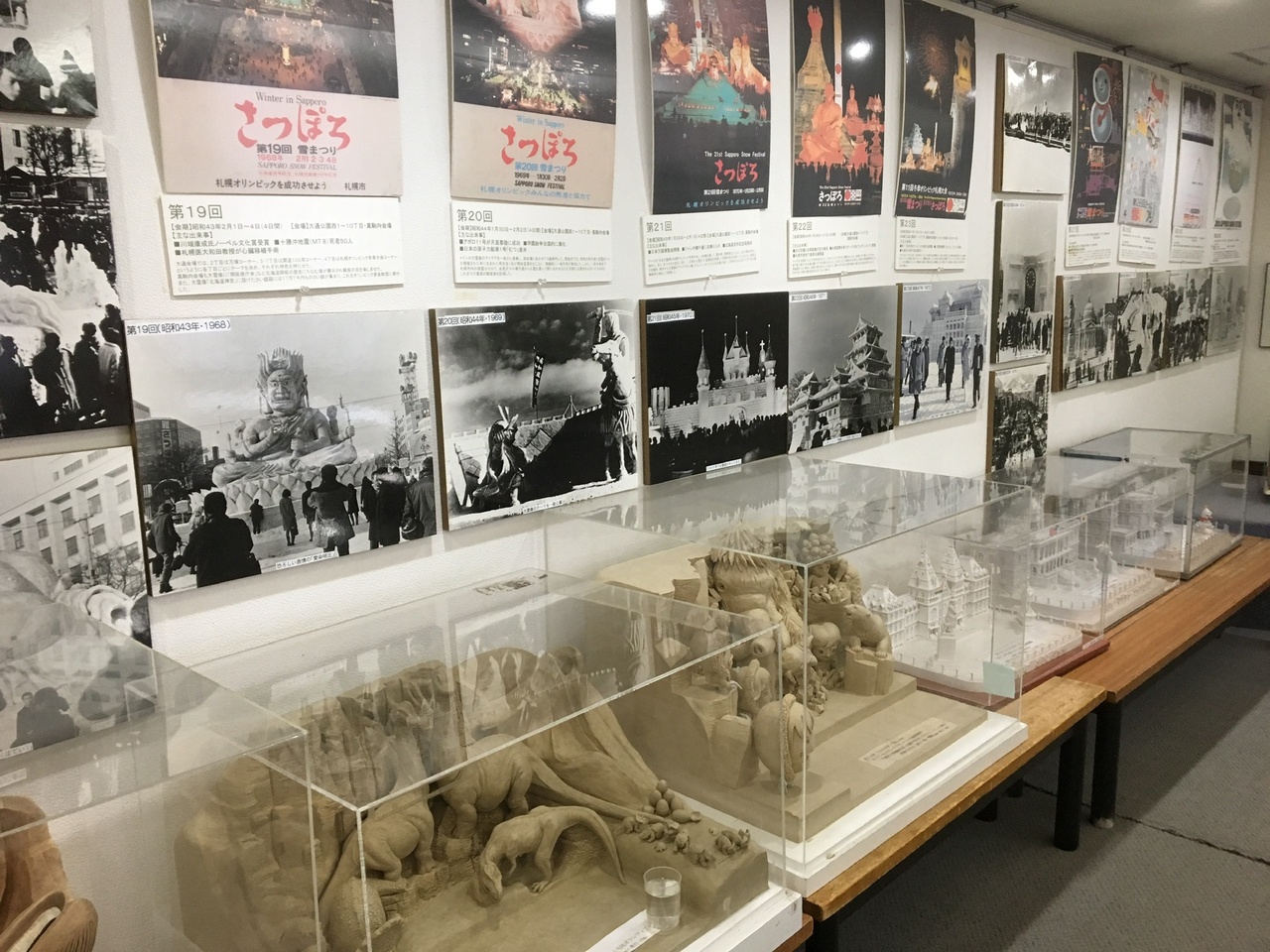 羊ケ丘にある資料館で、羊ケ丘に入る時には入場料が必要ですが、さっぽろ雪まつり資料館自体は無料でした。過去の雪像の模型が並んでいて、雪まつりに行った人には、その年度の模型を探すとよいです。自衛隊の作る雪像の製作過程の解説も興味が湧きました…