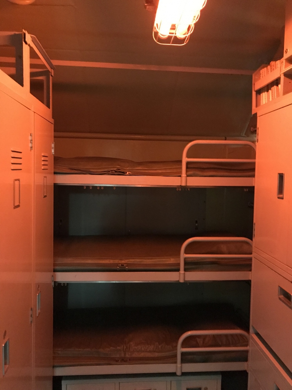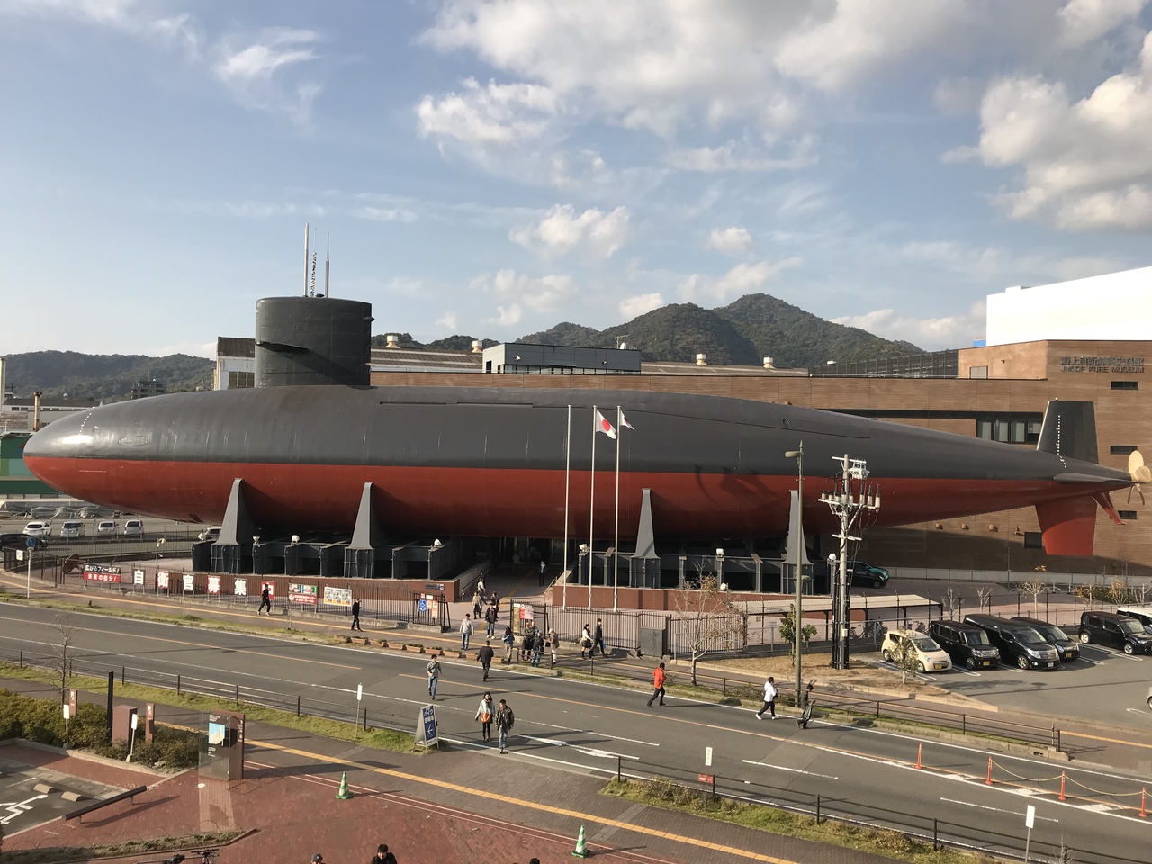 建物前の潜水艦は作り物ではなく退役した本物の潜水艦。しかも艦内に入ることができます。艦内は配管が入り組んで複雑な構造で、想像通りかなり狭い空間でした。ここで長期間生活するのはかなり大変かと。展示棟の方で潜水艦のベットに寝てみることができるので体感すると楽しいですよ。
