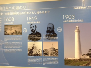 日御碕灯台のすぐそばにある展示室、資料館です。この灯台の建てられた経緯や、灯台建設の工法、灯台の光が意味するもの、光を如何にして遠くまで届けるのかなど、様々な展示があり、どれも勉強になります。小さな展示室ですが、見る価値ありと思います。