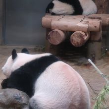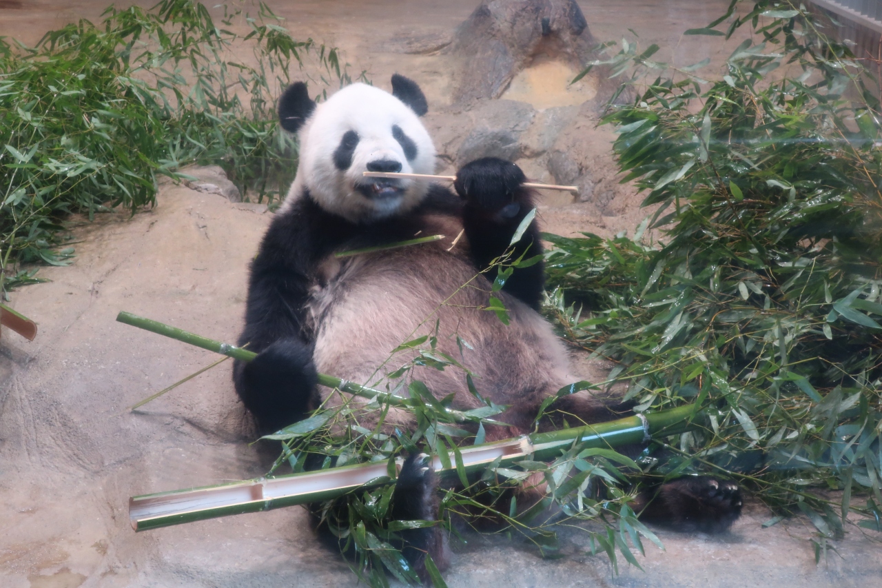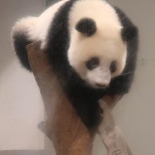 ジャイアントパンダの子供シャンシャンに会いに行って来ました。土曜の昼1時頃に行くと90分待ちと表示された行列。当日は暑く、日差し除けテントが張られ、うちわが配られてました。実際70分程でシャンシャンを見られましたが、動きながらの見学で見られる時間は5分もありません。更に時間によっては寝ている時間が多く、動いている姿は中々みられません。結局行った日は4回並んで動いているシャンシャンが見られたのは1回だけ。夕方の方が起きている確率が高いそうです。
