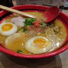 AM11:00に早めにランチにすべく向かいましたが、すでに順番待ちスペースが一杯になっていて行列が出来ていました。30分位待って席に座る事が出来ました。海外の方も食べにくる有名店です。ラーメンは流石にスープの海老の香り、味も最高です。もう一度食べたい。麺は中太であったが、細麺の方が私の好みでした。まあ、まったく問題はありませんでしたが。