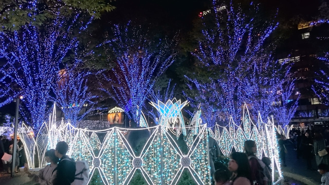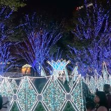 天井には星、木々にはイルミネーションが飾り付けられ、