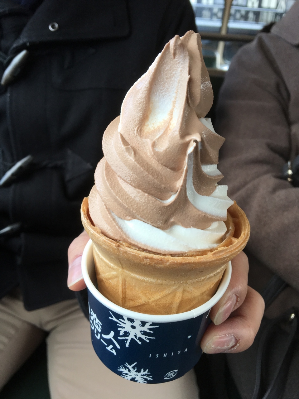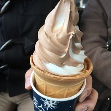 白い恋人パ一クの庭園にあるソフトクリームの売店です。濃厚なソフトクリームで、バニラとチョコとのコラボが美味しかったです。隣に赤い二階建てのロンドンバスがあり、自由に入れるので、バスの二階に上がって食べると楽しめます。