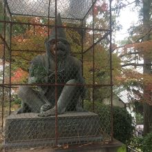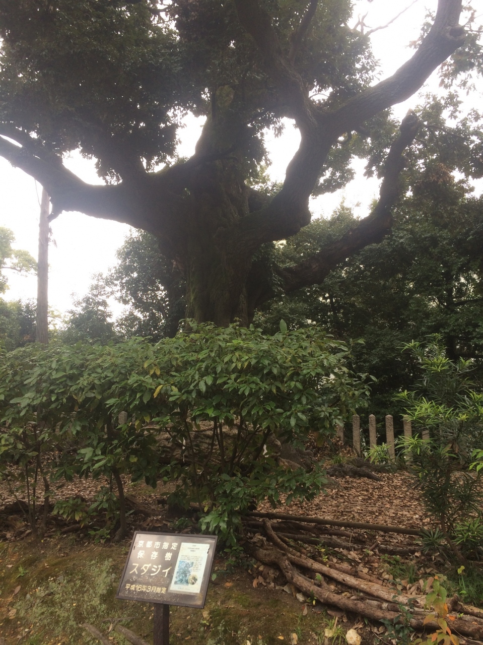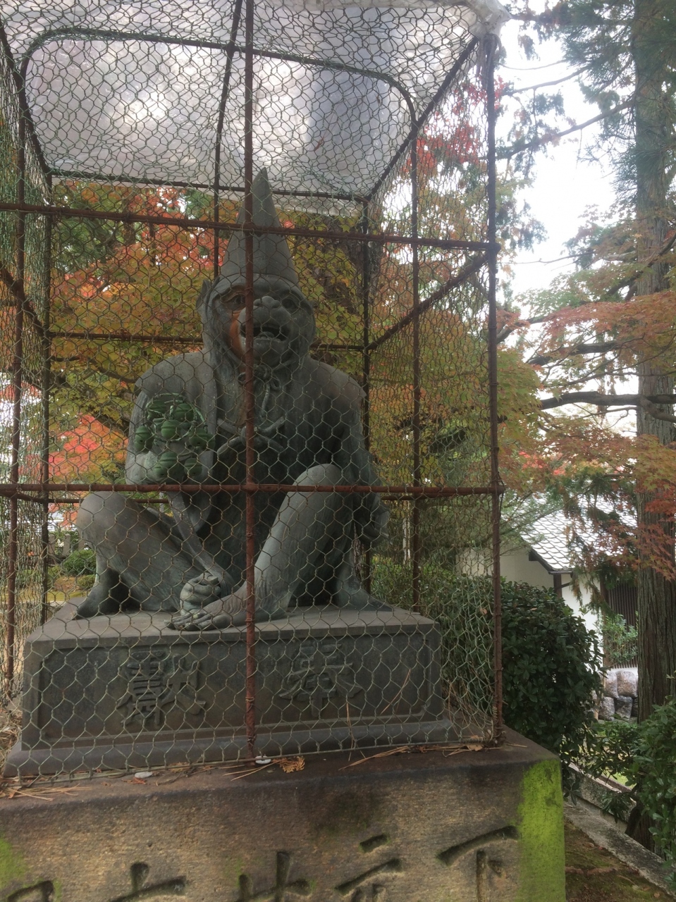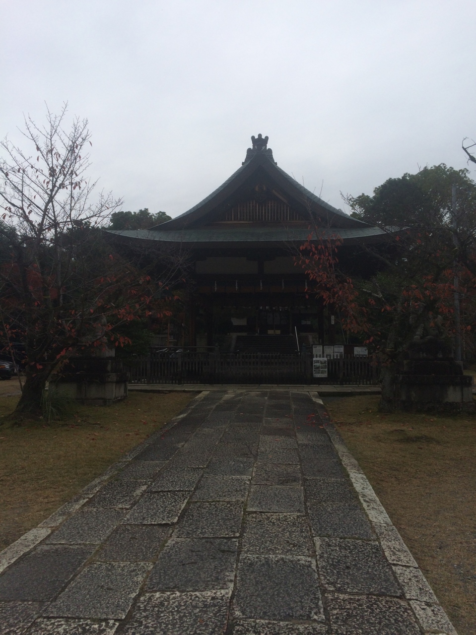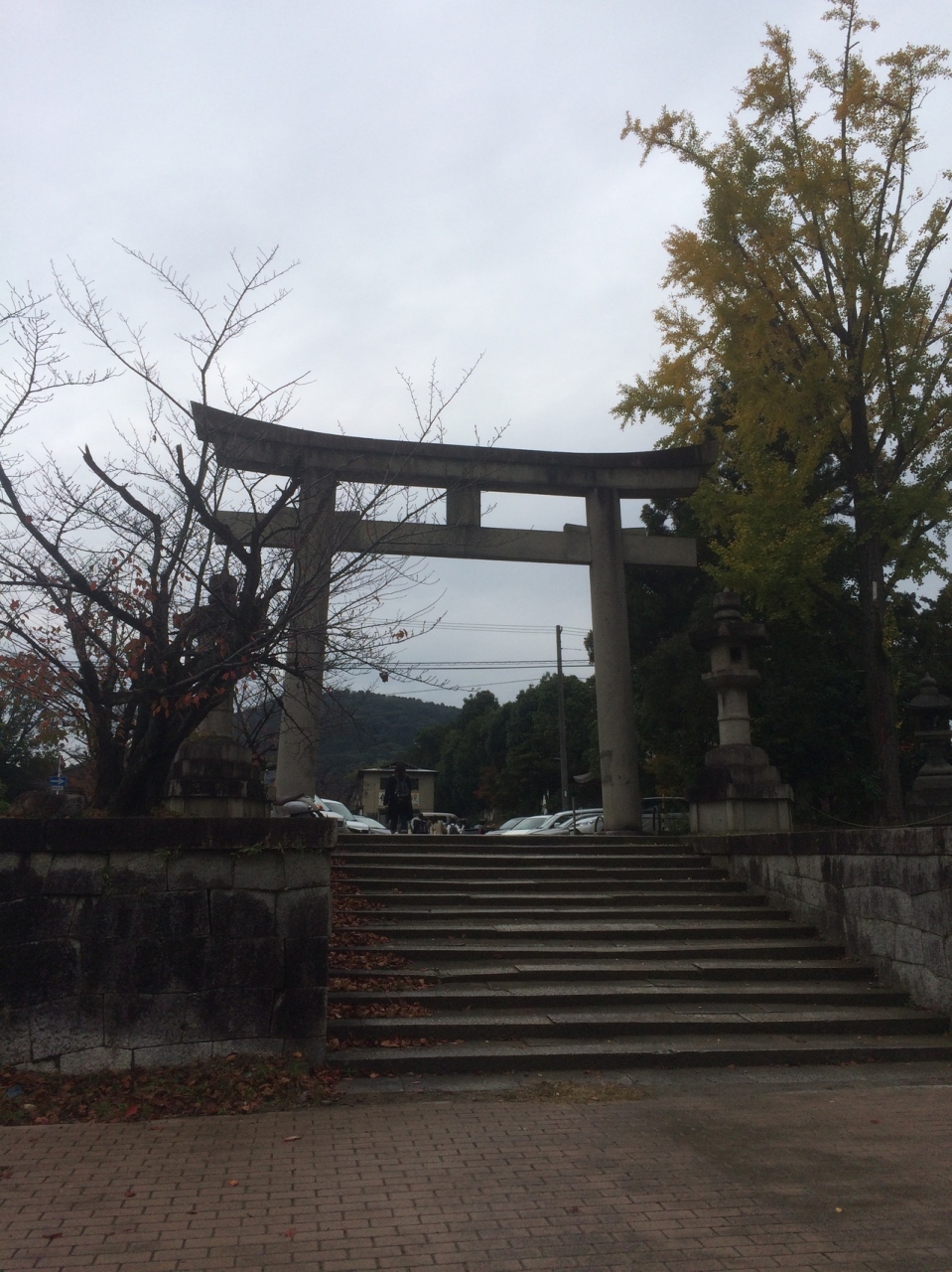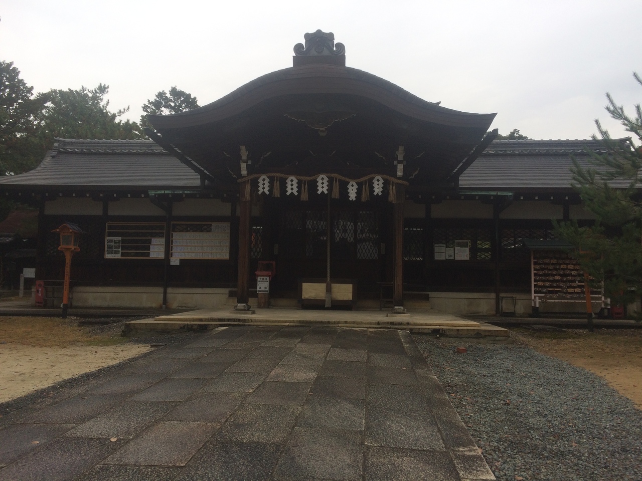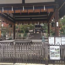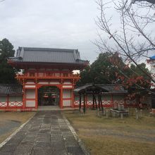 智積院付近からなだらかな坂を上がったところにあり大きな鳥居を上がって潜ると境内で、門が朱色でひときわ目立ちました。人が少ない穴場の神社でした。社殿の裏には大きな木があり、神官のような格好をした猿の像が印象的でした。
