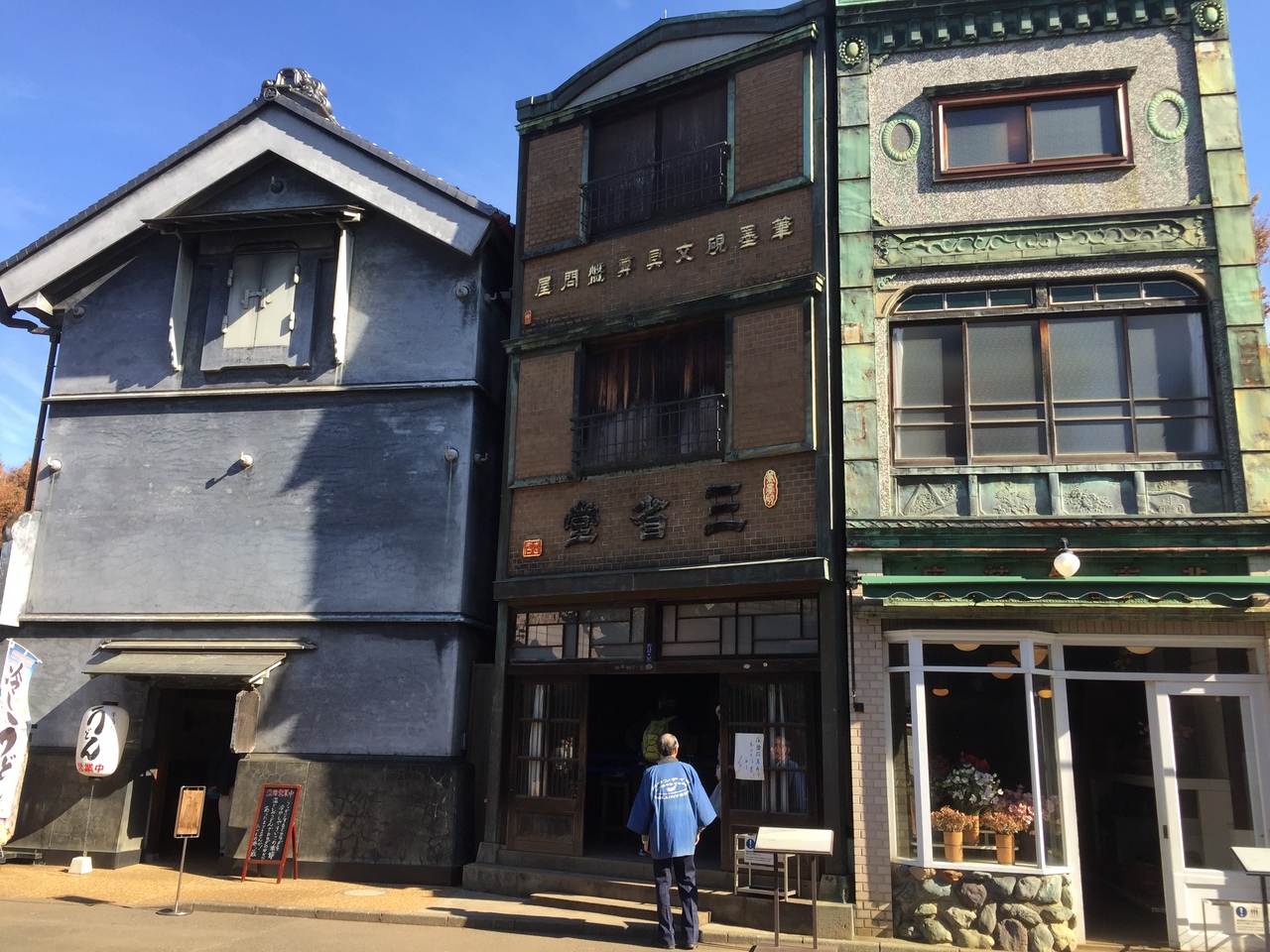 江戸東京たてもの園に再現された花屋さんです。同時期の建築の村上精華堂とは外観はよく似ています。現役時代は神田にあったようです。となりの三省堂はもともと別の場所にあったはずですが、隣接感がたくみに再現されています!