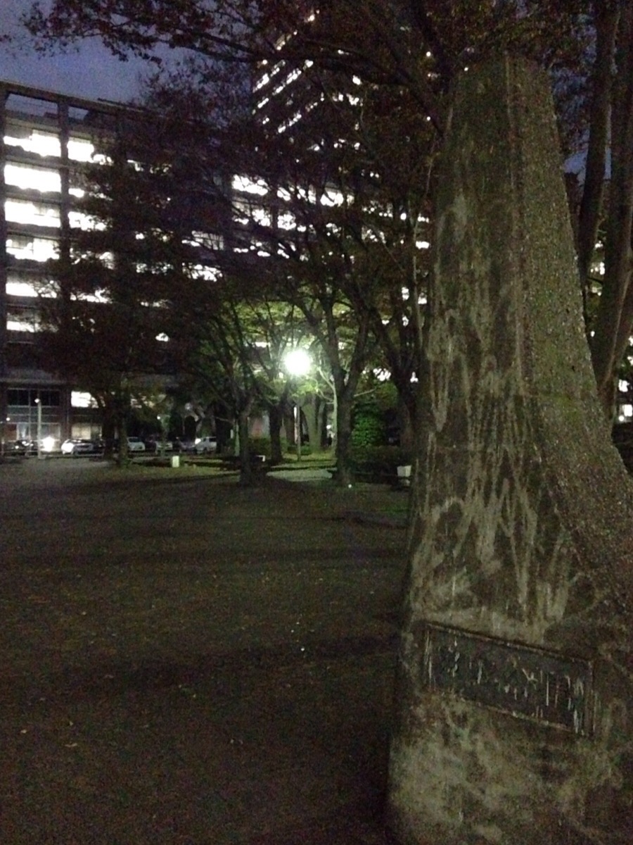 噴水や松があって確かに公園なのですが真ん中の道が広いのでいい通り道になっている感じです。