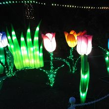 11月の三連休の初日にとしまえんに遊びに行きました。朝の開店同時くらいに着きました。それほど混雑はしていなくて入れました。イルミネーションは16時半から点灯されました。入口からチューリップの花がきれいでステキでした。他にも沢山仕掛けがしてあり夜のとしまえんもロマンチックでした。