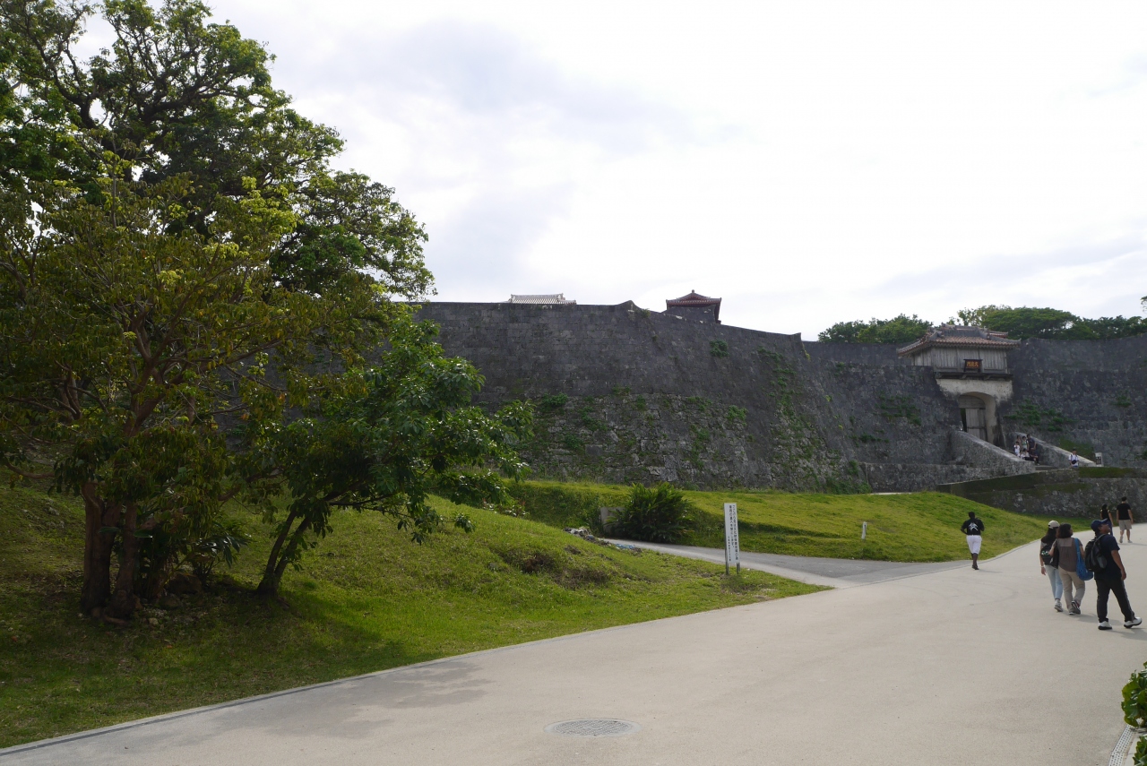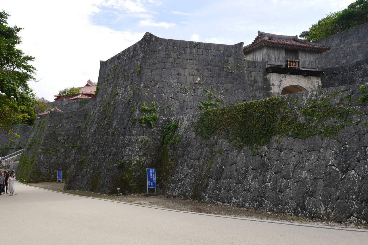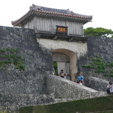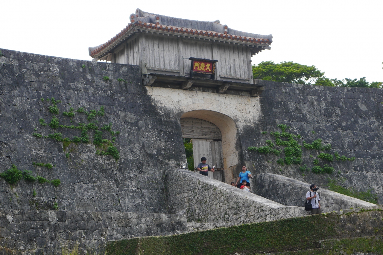 首里城外郭の北側に位置する門で、かつては女性用の通用門だったようです。首里城公園の北口から入ると目に前に見事な石垣に囲まれた首里城が広がり、ほぼ正面に石垣の間にある久慶門が見えてきます。