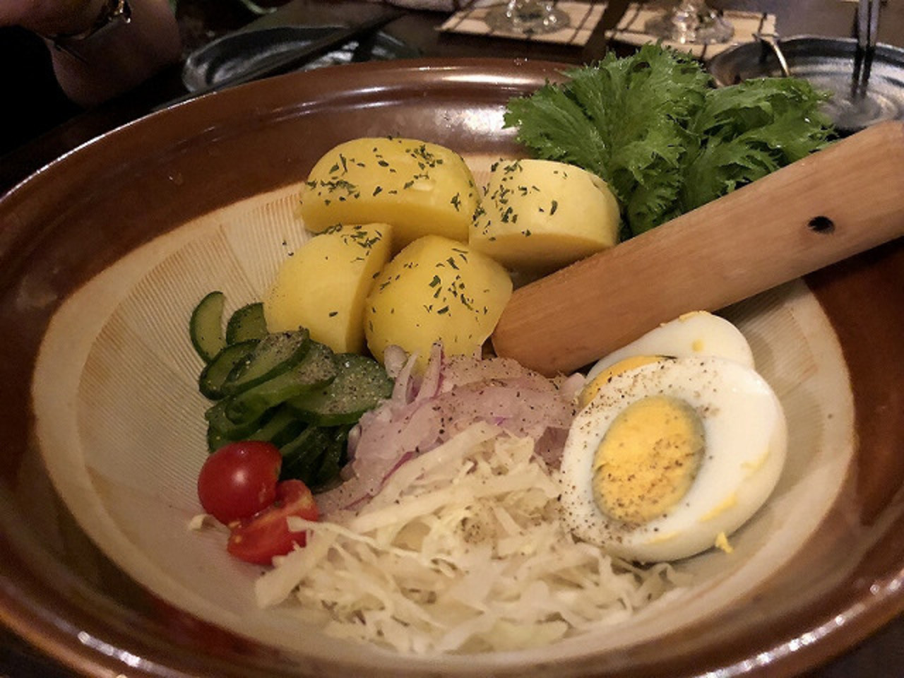 いかんせん、お鍋を固形燃料の火にずっとかけてても熱々グツグツにはならず、生温かったことが少し残念。お野菜中心なので、女子が喜びそうなお店。