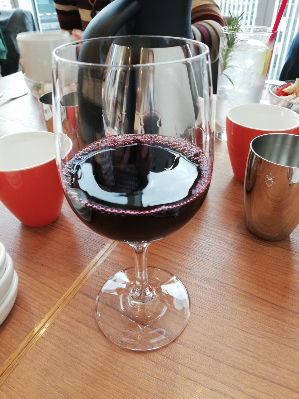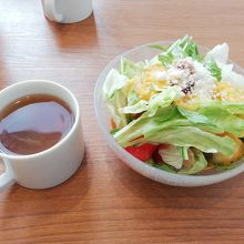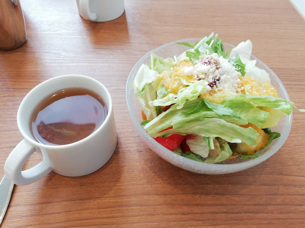 日曜日13時30分に予約して利用しました。お店のビルですが、飲食店が多くてエレベータが2台しかありません。その為、食事の時間はエレベータが一杯になってしまいまして、人がさばき切れていませんでしたので、予約時間ギリギリの到着は厳しいと思います。到着後に予約していた為すぐに案内されました。8割程度の混雑でしたね。1ドリンク付でしたので、ワインを選択しました。こちらでは、12種サラダビュッフェがいただけます。スープやご飯も準備されていましたよ。