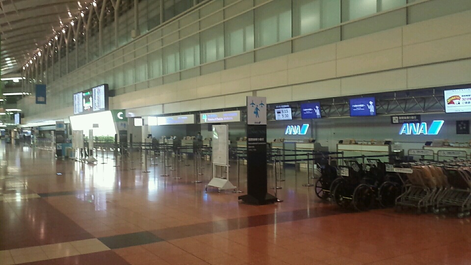 ANAのターミナルです。早朝便で石垣まで行く際に利用しました。空港に到着したのはAM5時前で、まだ人はまばらでした。売店、ショップもその時間は空いている店がほとんどなくて、早い店で開店するのはAM5時半ごろだったかと。24時間空港に割には国内線ターミナルはそれほど充実していないかもしれません。