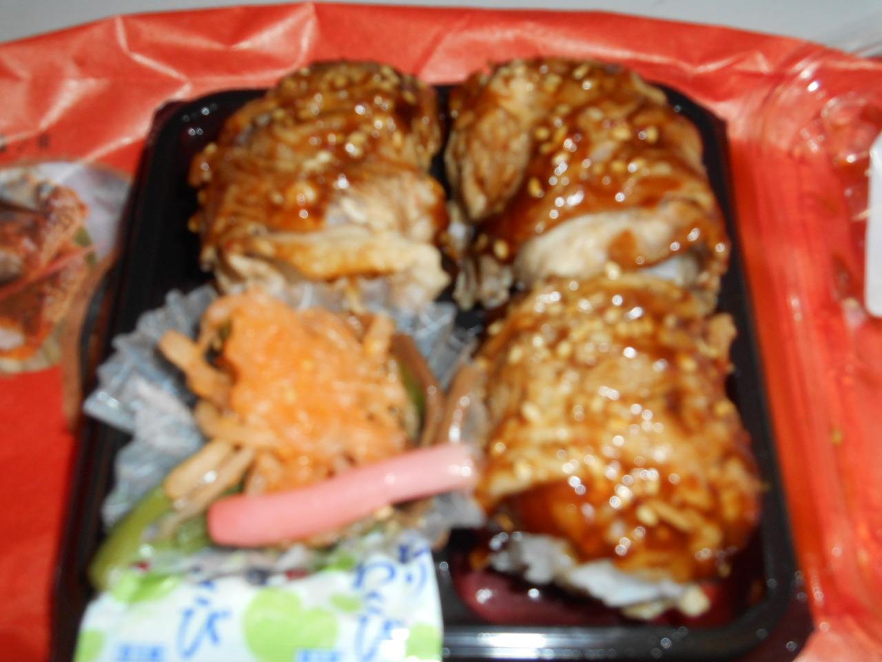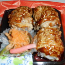 中身は焼肉で酢飯を巻いたものがメインでした。冷蔵庫に入って売っていたので、お肉の油が固まっていました。味は悪くないだけに残念です。