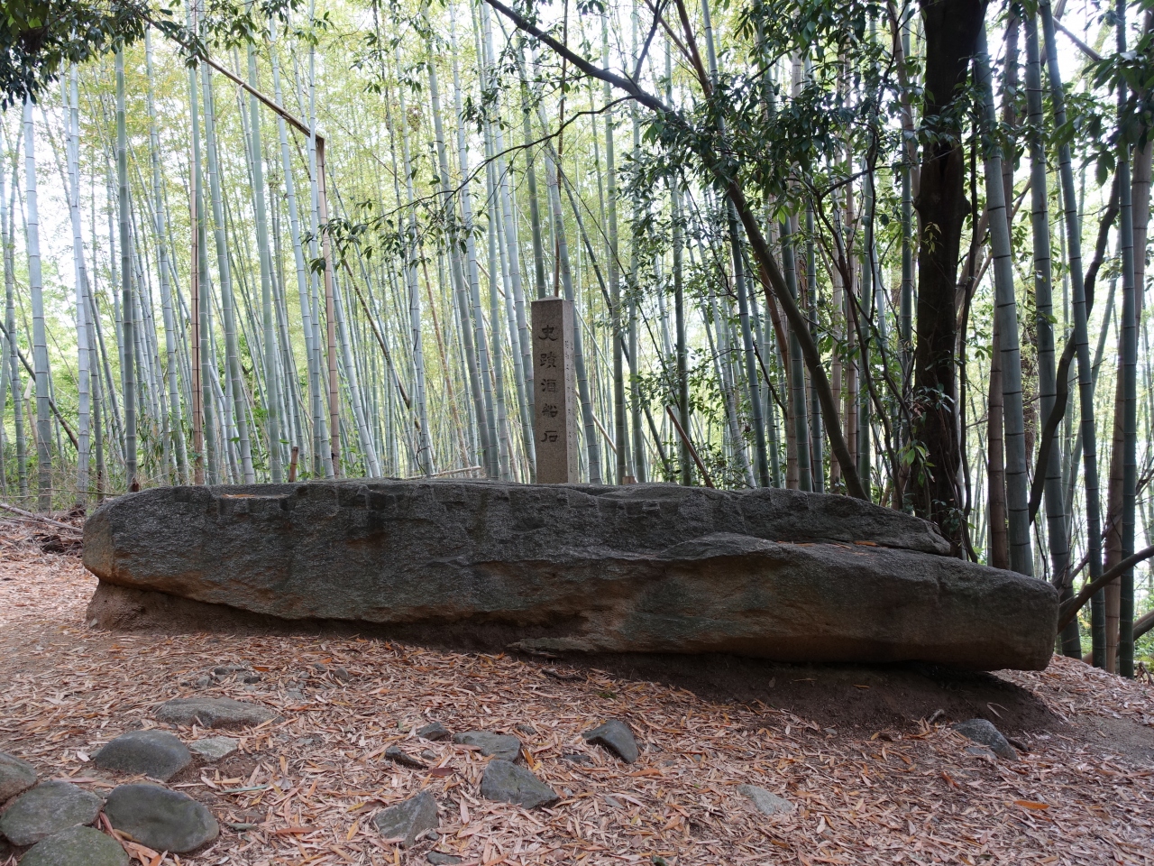 「酒船石」は、岡寺と飛鳥寺のちょうど中間あたりにあります。明日香村に点在する石造物のひとつですが、その中でもかなり大きな石です。酒造りに使われた石という事でこの名前が付けられたようですが、詳しいことはわかっていないとのことです。周りを取り囲む竹も印象に残りました。