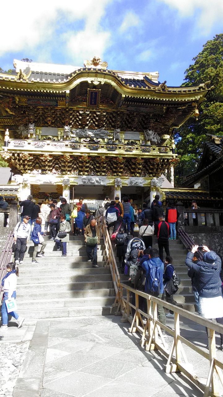 11月初旬、東京観光した際、少し足をのばして日光に行ってみました。東武日光駅から東照宮の近くまでバスが運行されていて、それに乗っていきました。ちょうど紅葉の季節と重なって車が渋滞していて、少し時間はかかりましたが、最寄のバス停から散策しながら東照宮まで20分くらいで行くことができます。靴を脱いで内部にも入ることができて中でお坊さんのお話などを聞く機会もありました。