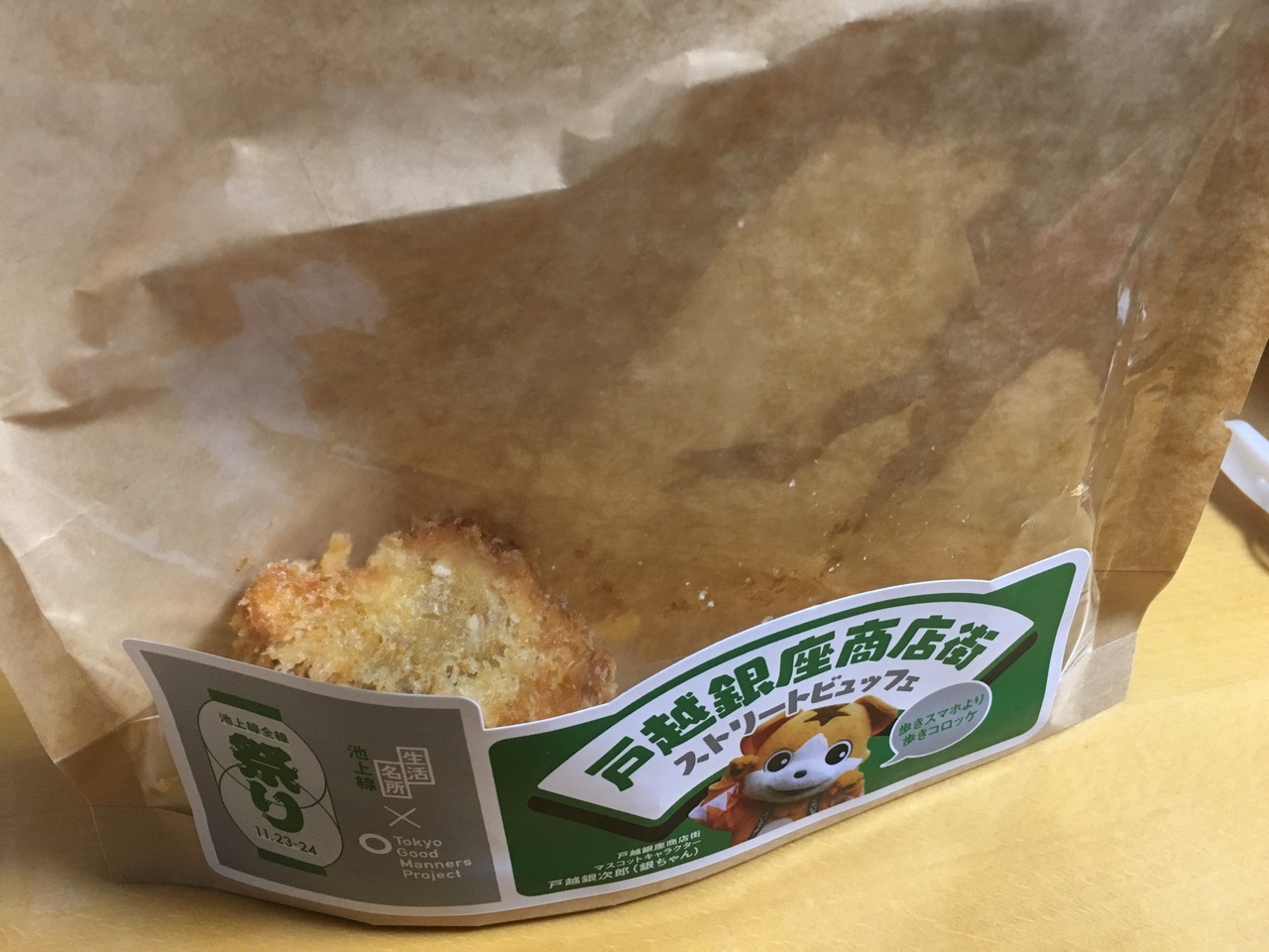 池上線全線祭りで戸越銀座商店街を訪れました。戸越銀座商店街はストリートブッフェというのがやっていて、商店街のお店で購入したものがその場で食べれるように等間隔にテーブルが設置されていました。唐揚げを購入して食べ歩きをしました。