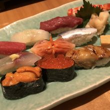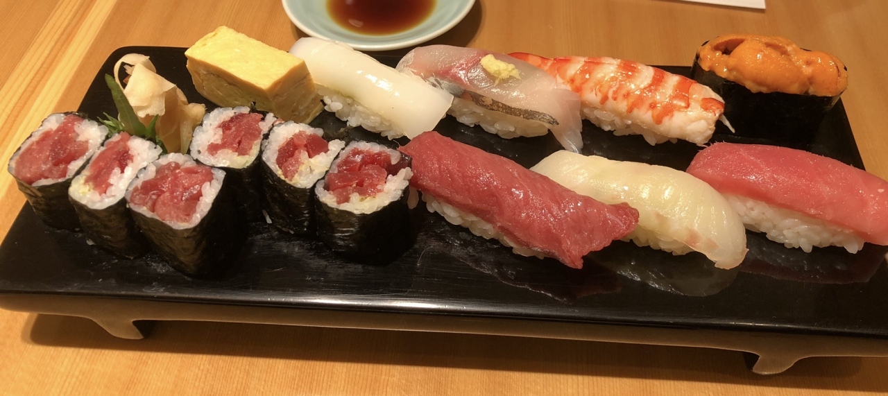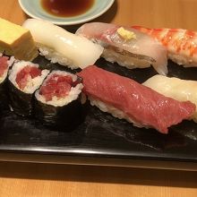 にぎり10貫セット「彩(いろどり)」は5000円プラス税、7貫プラス鉄火巻きセット「盛合わせ」は4000円プラス税でした。