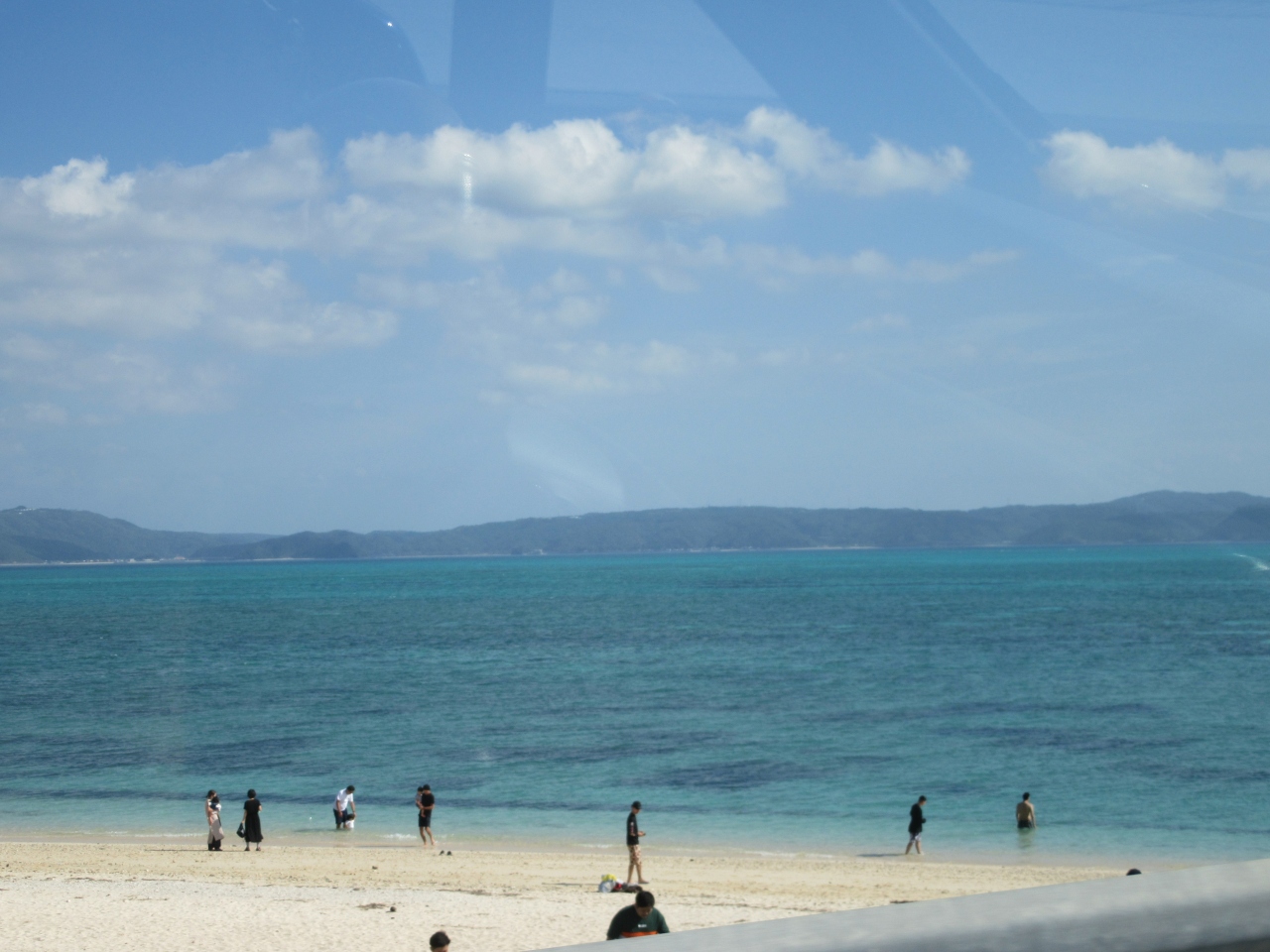 両脇の浅瀬の海の色、青空が重なれば鉄板の絶景!