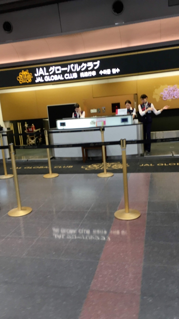 さすがエリート会員だけあって、チェックインカウンターからして特別扱いのJALグローバルクラブカウンター。場所もわかりやすいだけでなく、係員の方の対応も非常によいですし、乗継便などの対応もきちんとしています。