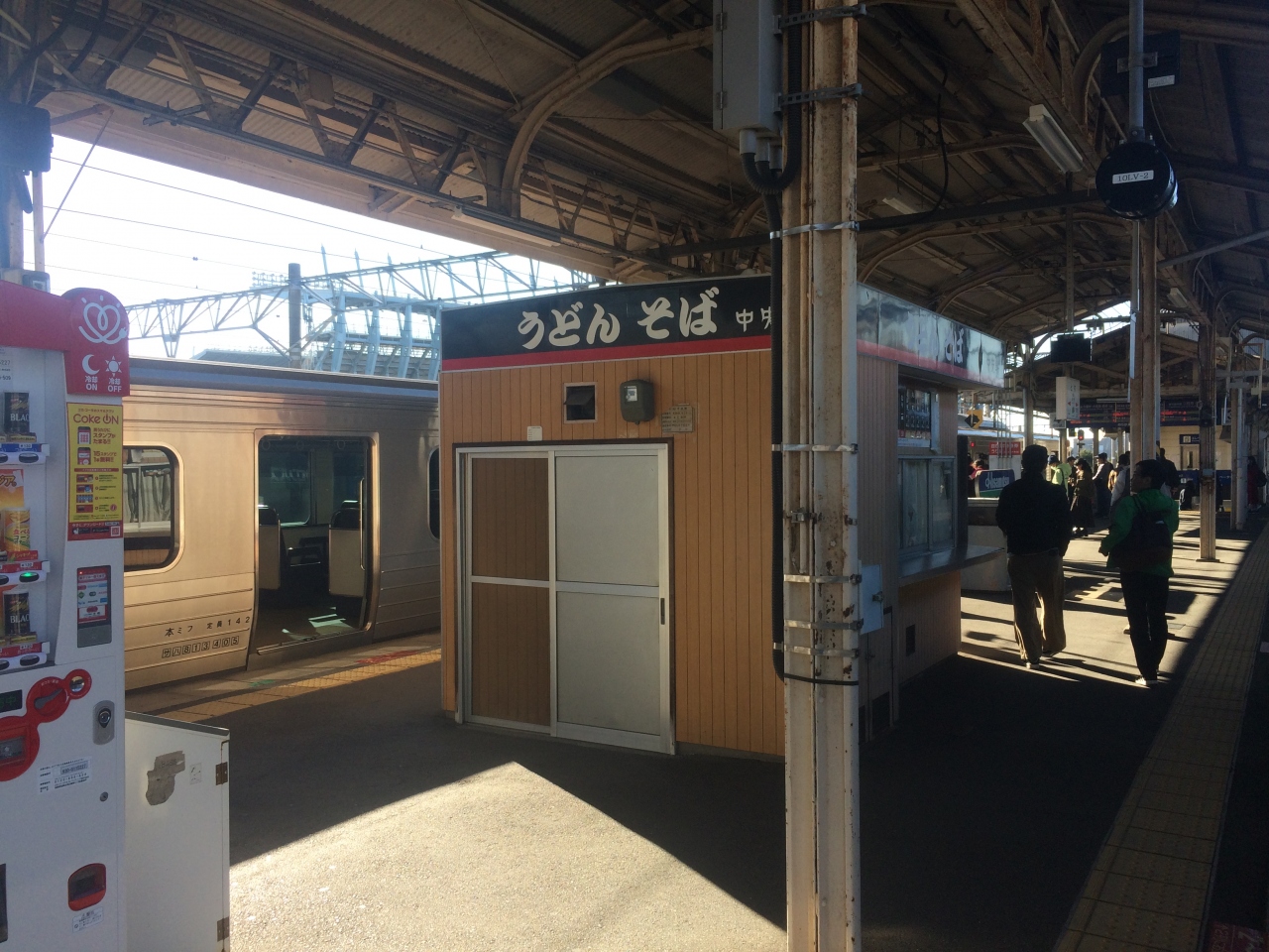 JR鳥栖駅のプラットフォームにあるうどん屋さんでかしわうどんが350円。