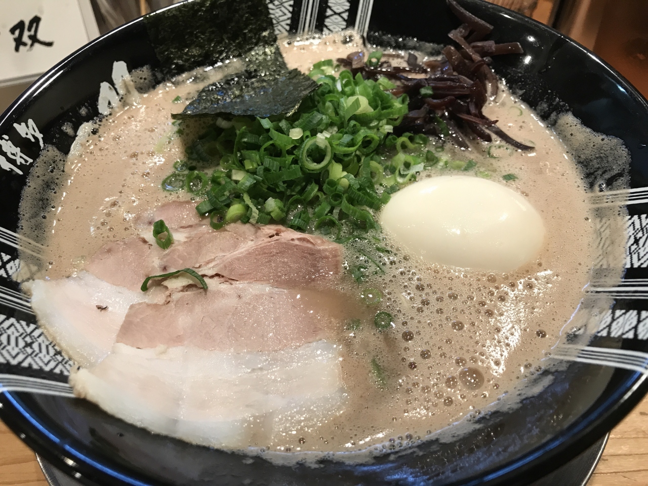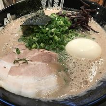 入り口の券売機で食券を購入し、カウンターで待つスタイル。ここのとんこつラーメンは濃厚でもないが、しっかりしたスープで泡立ったスープが印象的。細麺とも良く絡まっており、とても美味しいとんこつラーメンです。