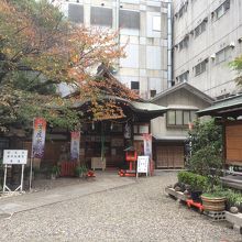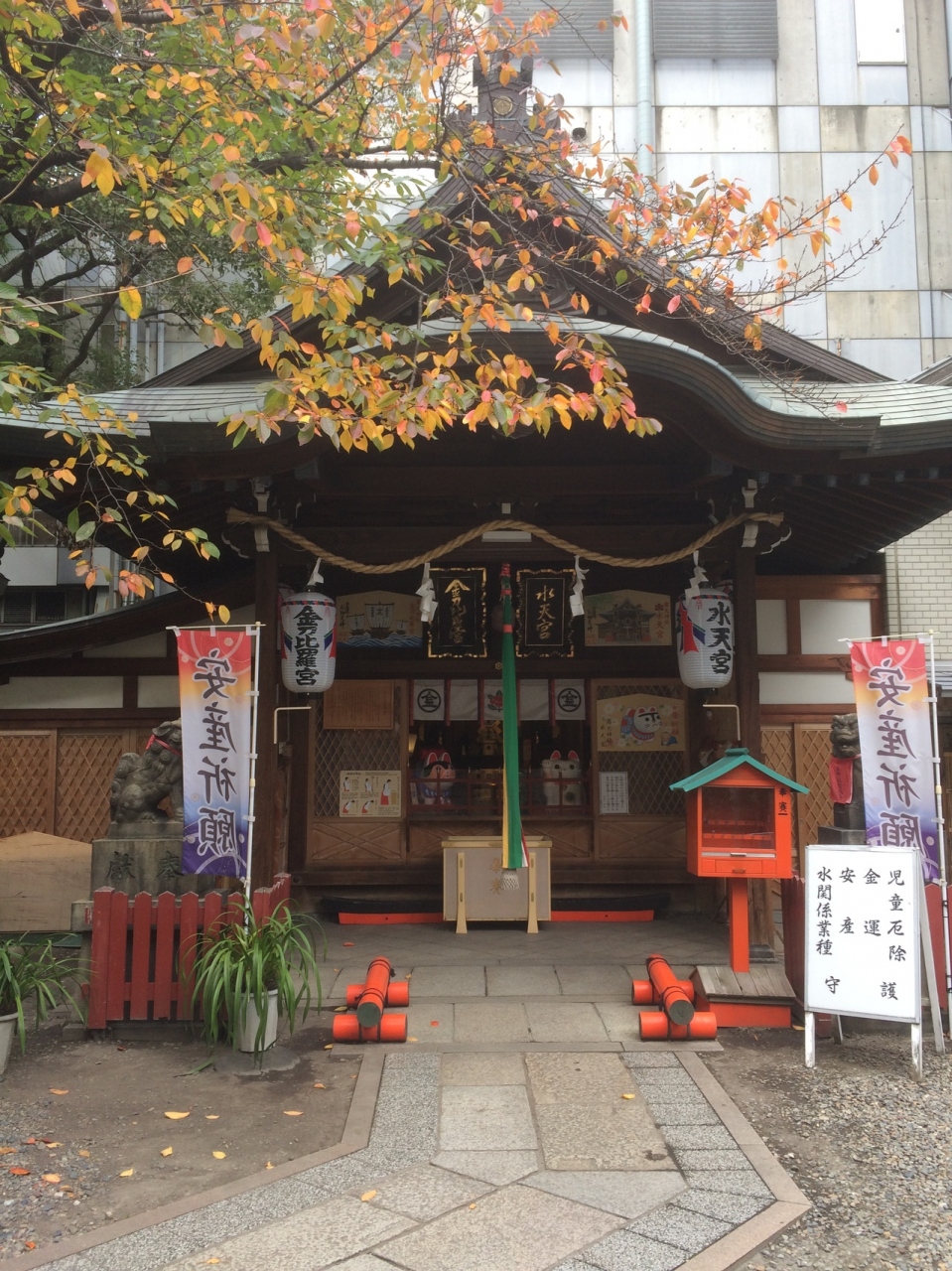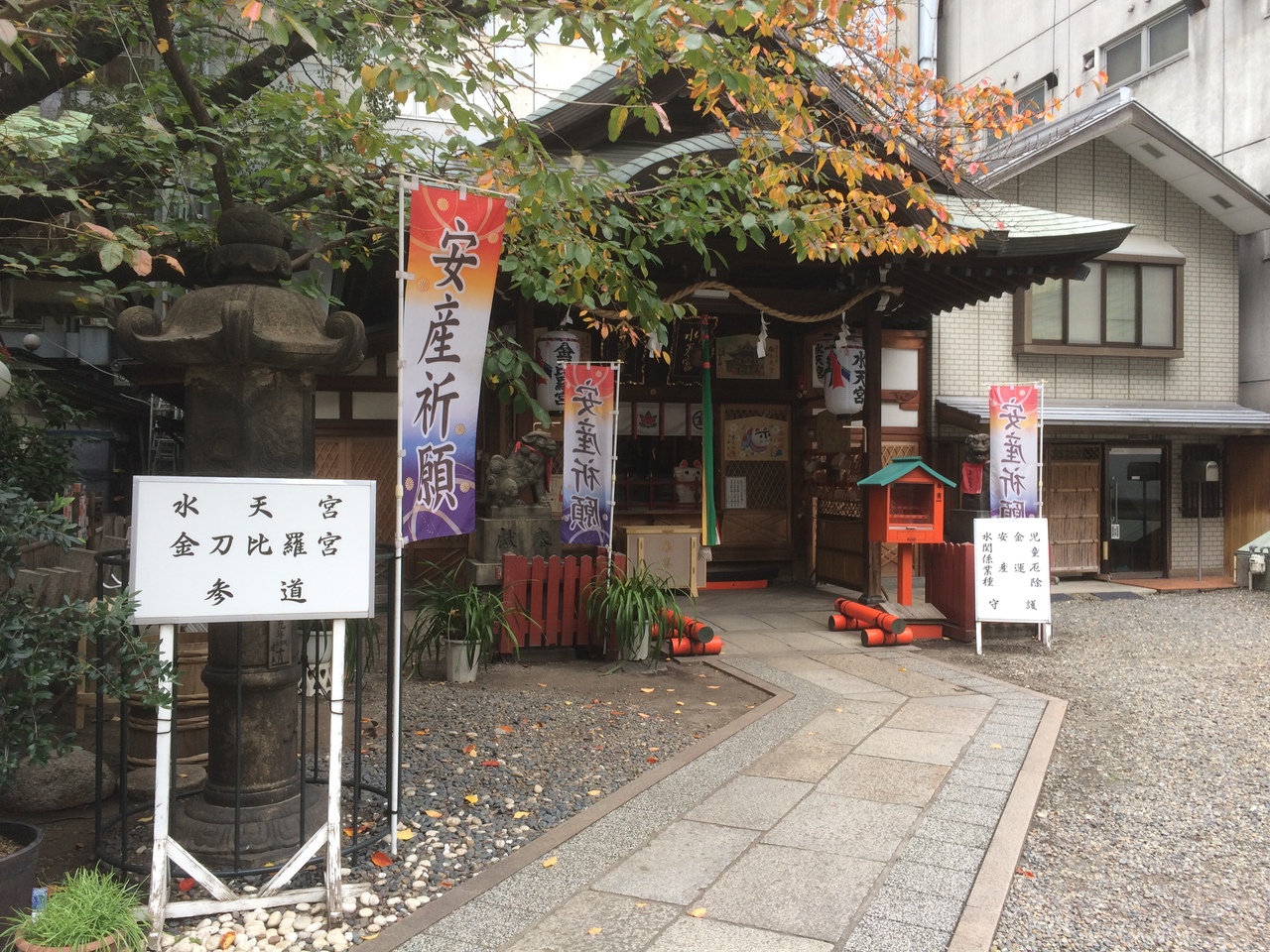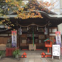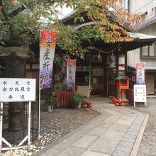 安産祈願の幟が2つ立っていましたが、金運、児童厄除にも良いようです。建物には大きな絵馬がいくつか飾ってあり、猫の絵馬が可愛らしかったです。獅子の像が二つあり、白い提灯が二つぶら下がるカラフルな建物でした。