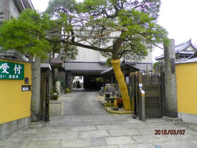 JR総武線信濃町駅から北に向かい左門町交差点を右折した寺院が並ぶいっかくにあります。境内に入っても、一般の民家のような建物で、あまり寺らしくはありませんでしたが、山門横にある松は、とても見事で、この寺のシンボル的存在となっているようです。