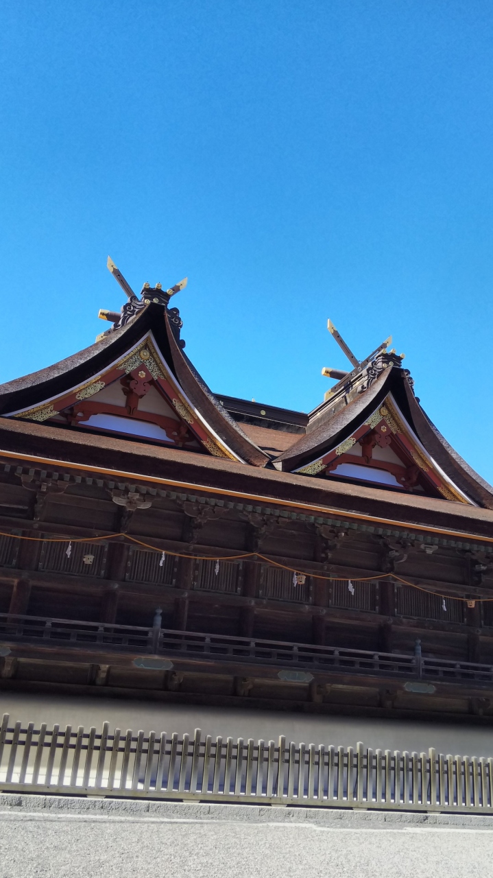そして、国宝のご本殿は威風堂々、屋根の反りも美しかったです。また、長い回廊も見ものでした。