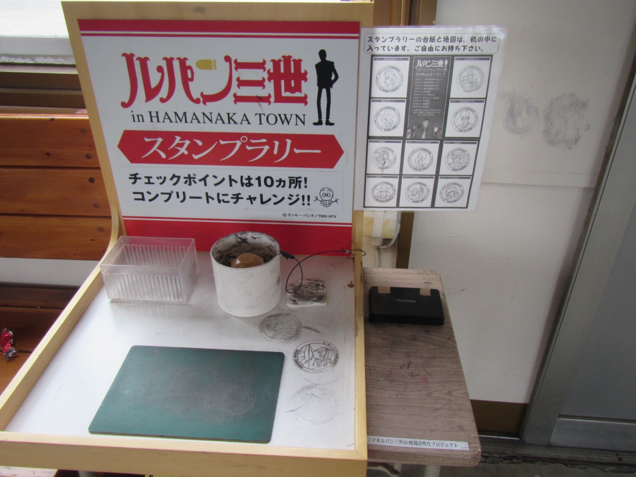 駅舎内には、スポット巡りのスタンプも設置されていて、ルパンのパネルも立っていた。