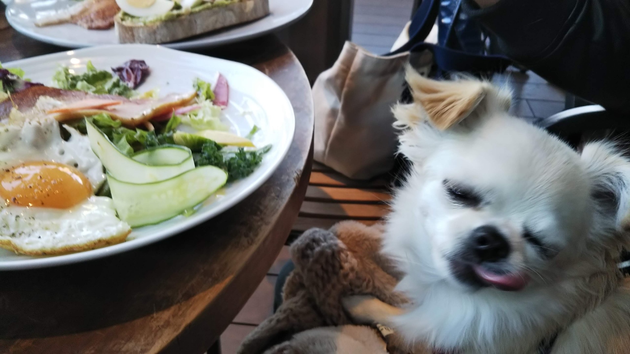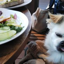 すぐにあと2組入ってて、うち1組もペットがいてテラス席で、よそのワンちゃんに吠えがちなうちのワンコがザワつくかと思いきや、たくさんの植物でお互いが見えないようになっており、気づかなかったようで、落ち着いて過ごせた。