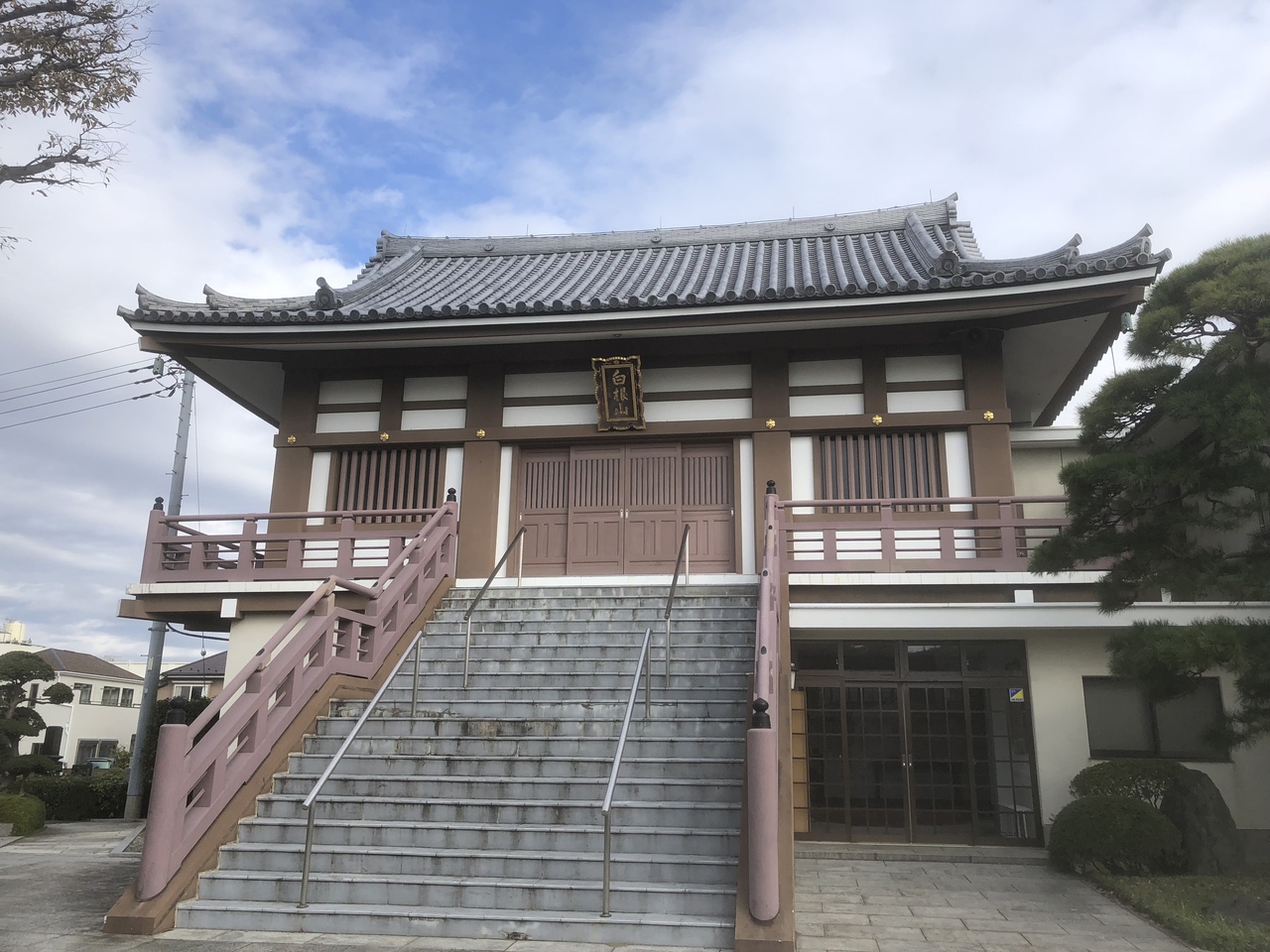 相鉄線鶴ヶ峰駅から徒歩20分くらいズーラシア方面に行ったところにあります。入り口は急坂になっています。登った丘の上には木造の立派なお寺があります。ここもまた立派な階段があります。浄土真宗のお寺。入り口の石碑の真宗が古さを感じるものです。