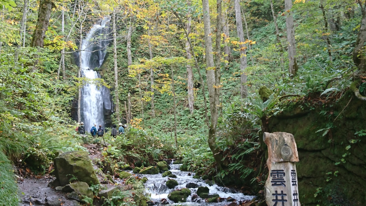 3段になっていて、水量のせいか途中が2筋に分かれていました。滝壺がなく最後が水しぶきになる滝でそれが雲のようという事で雲井の滝と名付けられています。バス停もあり観光客も割といっぱいいて有名な滝のひとつで立派な滝ですが、おすすめをどれかひとつ選ぶとしたら個人的には銚子大滝が一番でした。