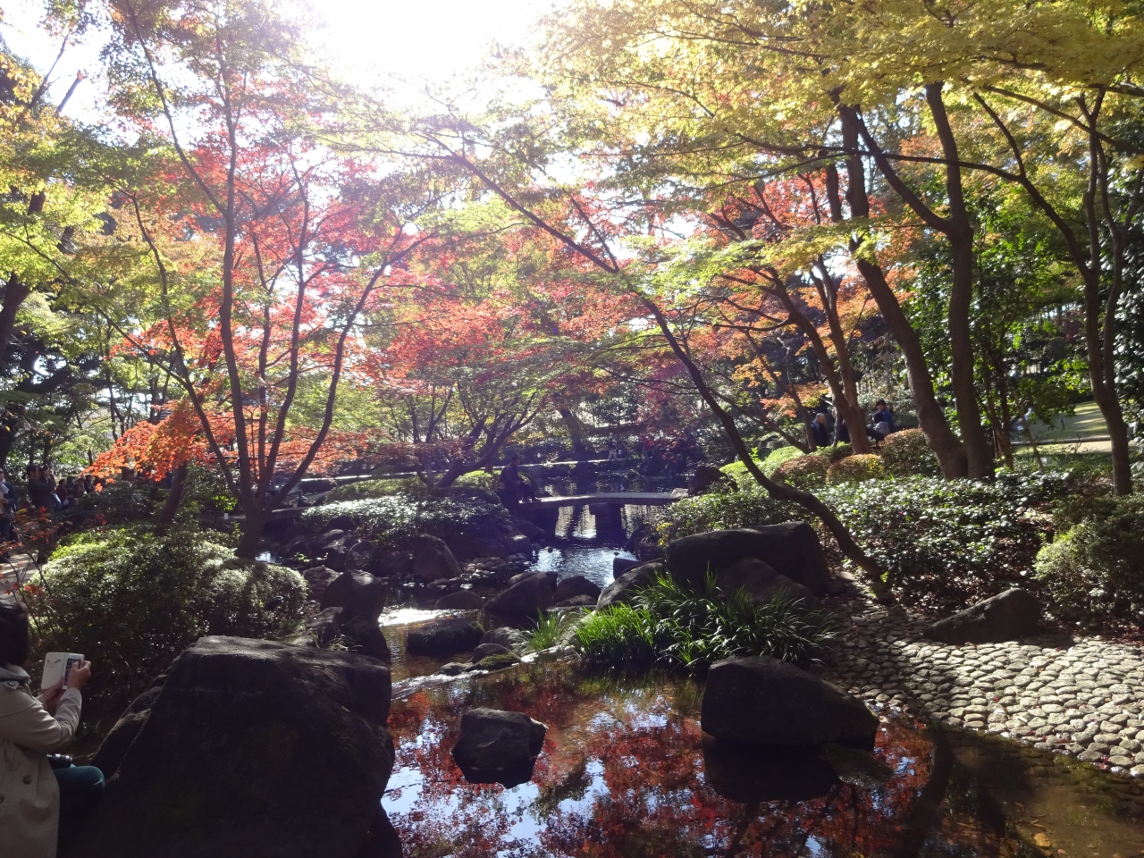 公園は日本庭園の典型的な物で池があり、高い木々が周囲を囲み、自然の魅力に溢れていました。