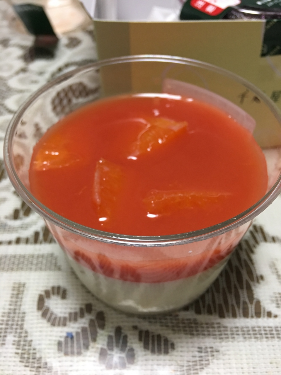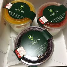 大きなカップにゴロッとフルーツが入っていて食べごたえがあります。カップが二層に分かれていて、下には杏仁豆腐が、上の容器にソースが入っていて、食べる時にフルーツを杏仁豆腐にかけます。千疋屋なのでフルーツが美味しいのは当然の事ながら、滑らかな舌触りの杏仁豆腐も格別のお味。羽田空港限定のブラッディオレンジとブドウ、定番のマンゴーを購入しました。