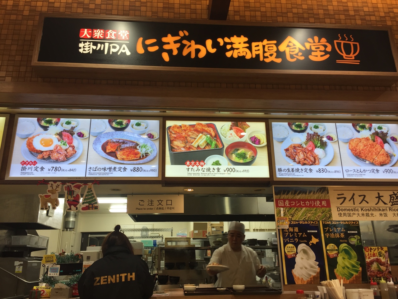新東名高速道路 掛川パーキングエリアにあるにぎわい満腹食堂さんで、お食事をいただきました。 メニューは多くて悩みましたが、ご当地メニューを食べたかったので、写真付きでイチオシっぽい釜揚げ桜えびとしらすの海鮮丼を注文して ご当地メニュー堪能しました。