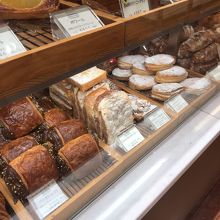 フランスパン、クロワッサン始め、いろいろなパンがショーケースにあり、スタッフに注文するスタイルのブランジェリーです。