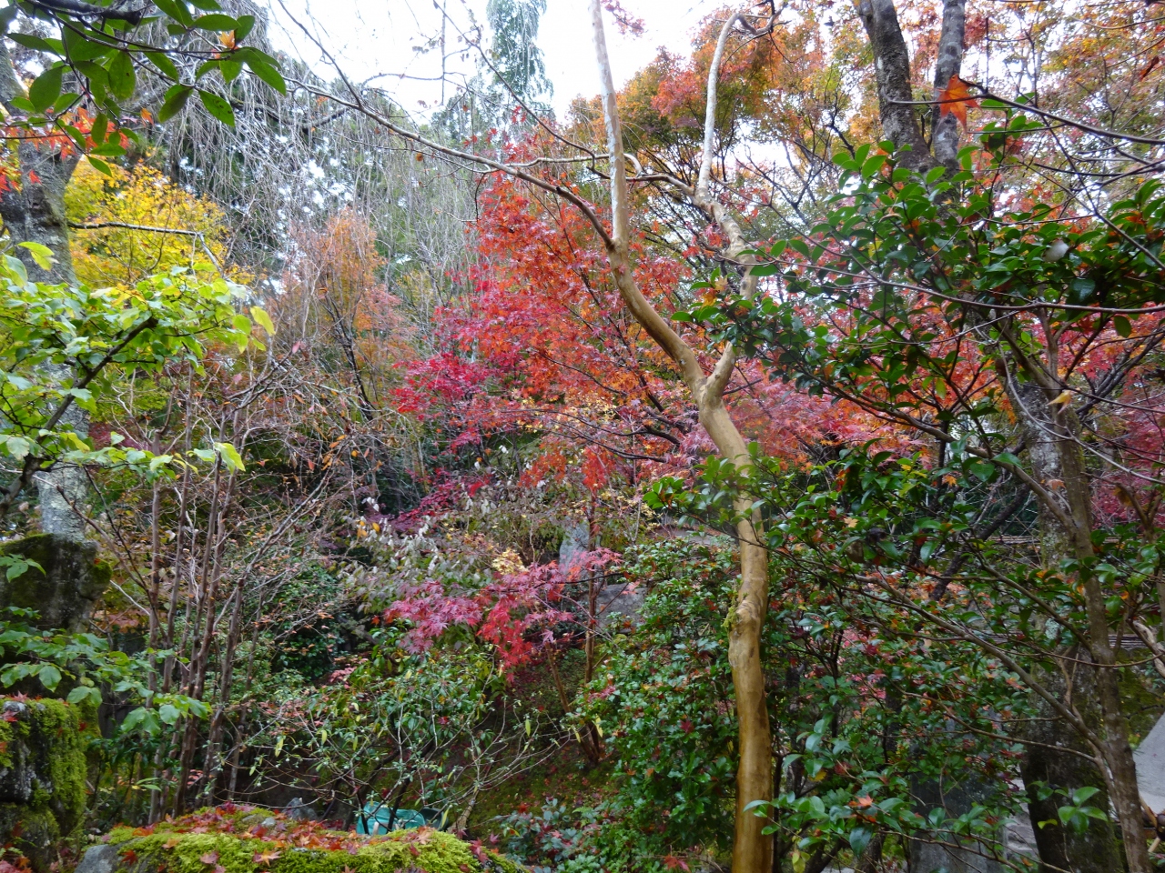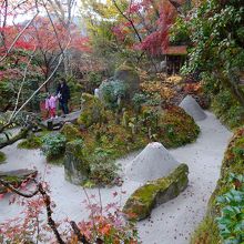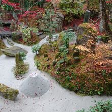 大原にある宝泉院境内南側の低地に新しく誕生した庭で、平成17年3月に完成されたようです。白石で作られた山や、多くの木々が所狭しと植えられており、外周を歩きながら眺めたり、庭の中心部を歩いたり、狭いながらも高低差も利用され、見る場所場所によって、色々楽しめました。