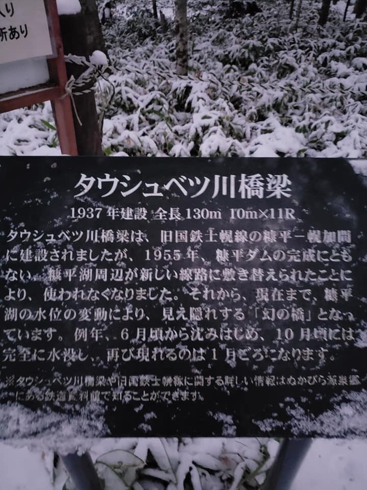 ここの場所は河東郡上士幌町ぬかびら源泉郷にあり、夏になると湖に沈む幻の橋梁と呼ばれている橋です。
