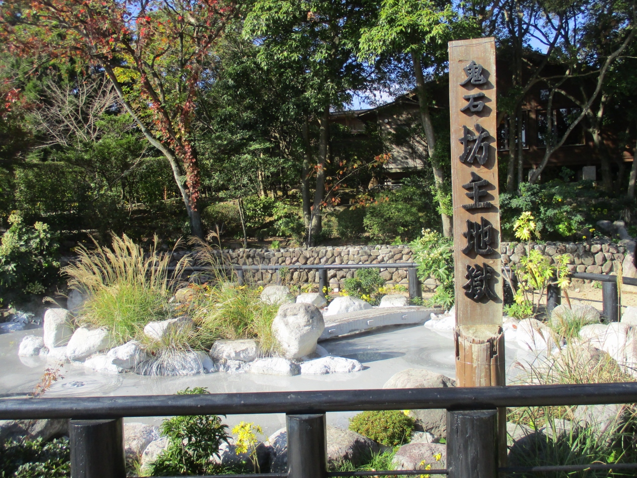 海地獄の次に訪れたのが鬼石坊主地獄でした。園内には足湯があり足を癒して一休みしました。