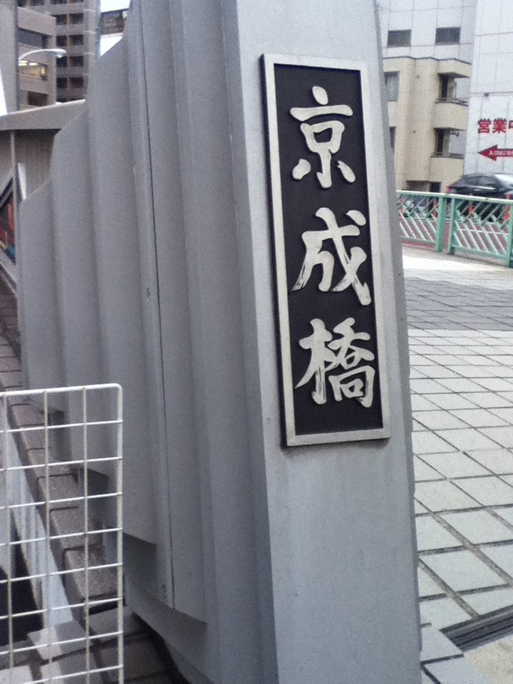 押上駅横の北十間川に架かる橋。長さ18.75mと短いが、幅は34.1mと広く多くの自動車や歩行者が通っていた。お勧めの点は、橋はシンプルなデザインながら鉄骨造で頑強そうであること、京成橋の名称は近くに京成電鉄の本社があったに由来すること、