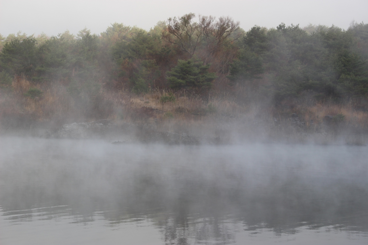この時期は水温と朝の冷えた気温(0°前後)で朝は霧が出やすいようです。