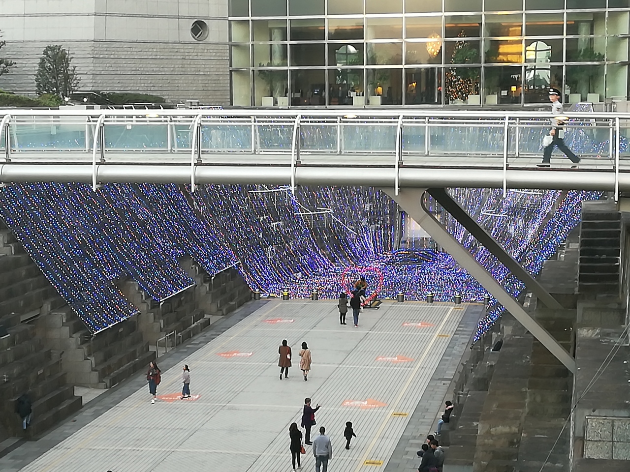 深くて大きな石段のところに、美しい大量のイルミネーションがあって、素敵ですよ。