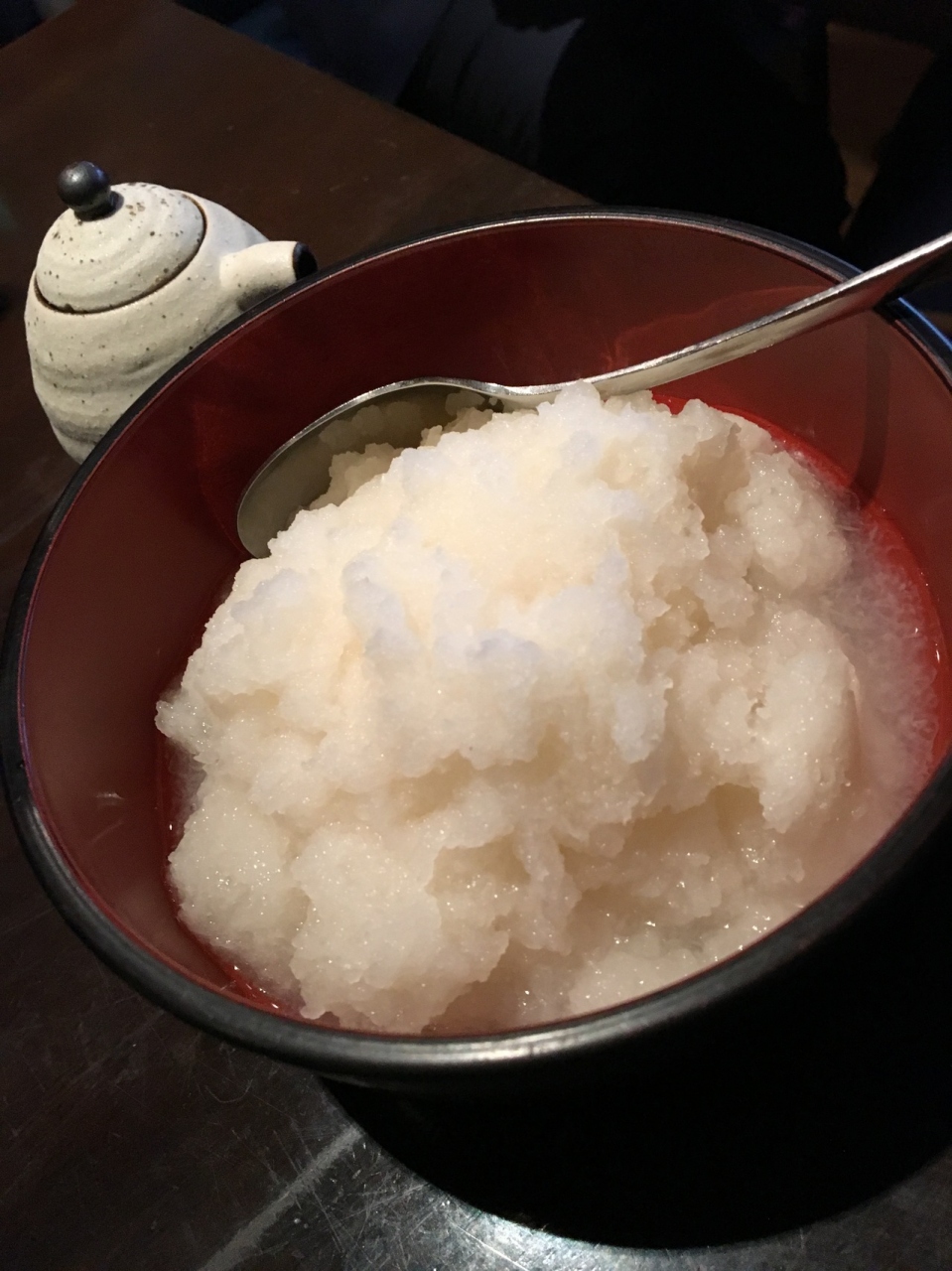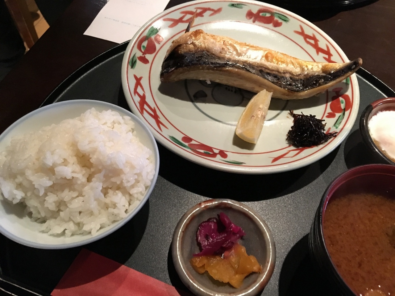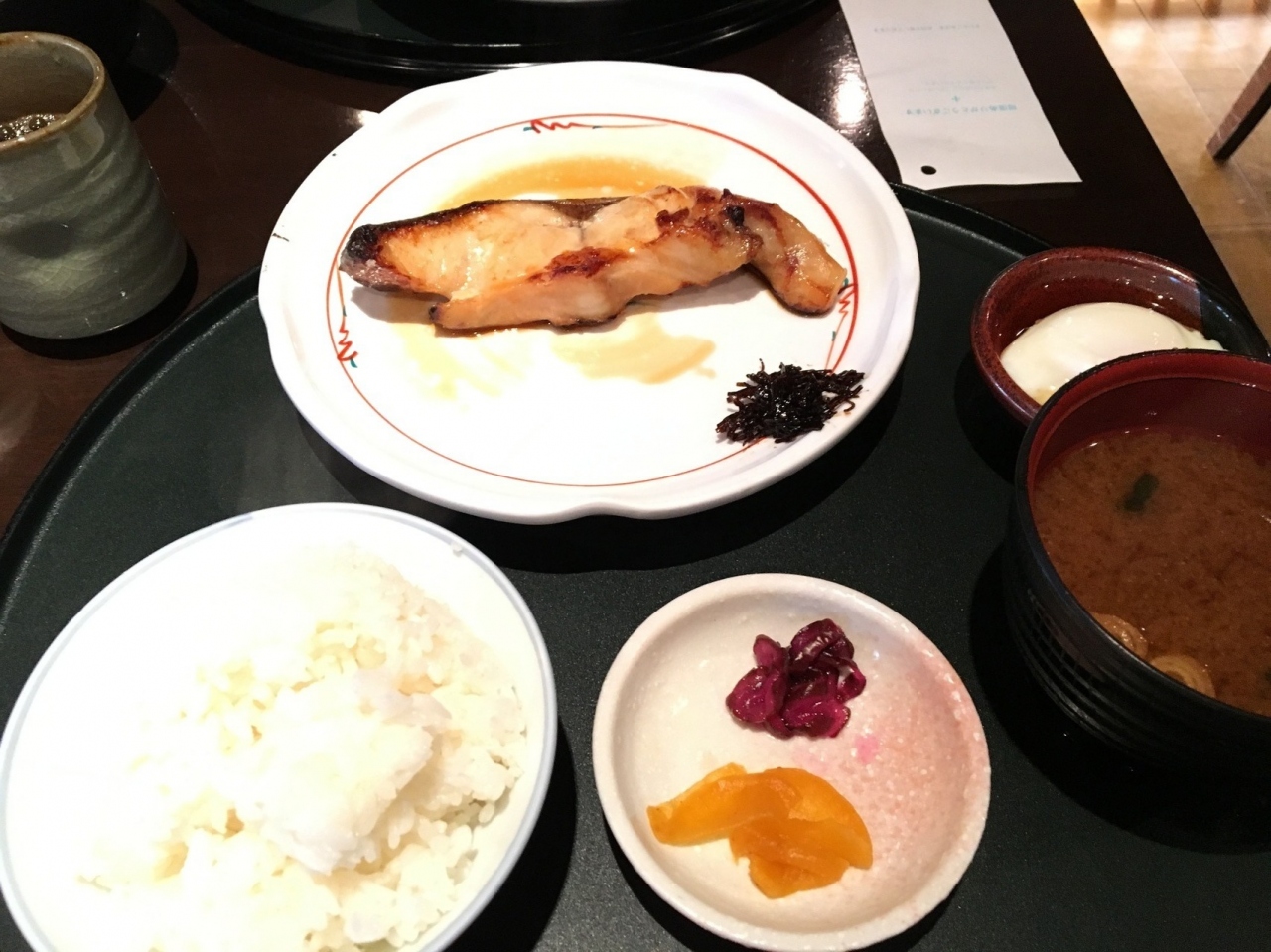 香ばしい焼き魚のお昼ご飯。若い方にはサバの塩焼き、50代くらいの方には銀ムツの照り焼きが人気のように見えました。大根おろしが食べきれないほどたっぷりあって、幸せです。お米は魚沼産こしひかり、甘くて旨味が濃いご飯です。お代わりもできるそうです。ほかにお味噌汁、温泉卵、漬物。シンプルでとても美味しい昼食でした。ぜひまた行きたいお店です。12時前には満席なので早めに。