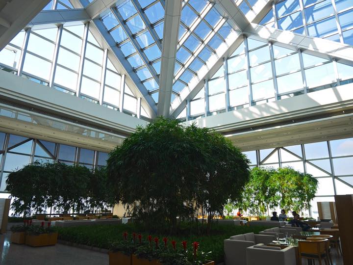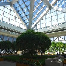 グリーンが配置されて中央、エレベーター面以外はガラス張りなのでとても開放的な雰囲気になれます。
