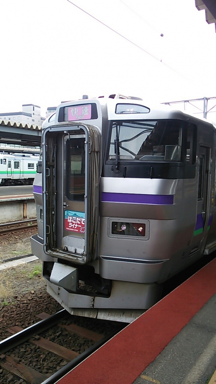 快速タイプと各駅停車タイプの2種類があり、車両は札幌近郊で運行している733系という電車です。