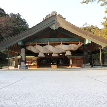 出雲大社本殿の左側にあるのがこちらの神楽殿です。