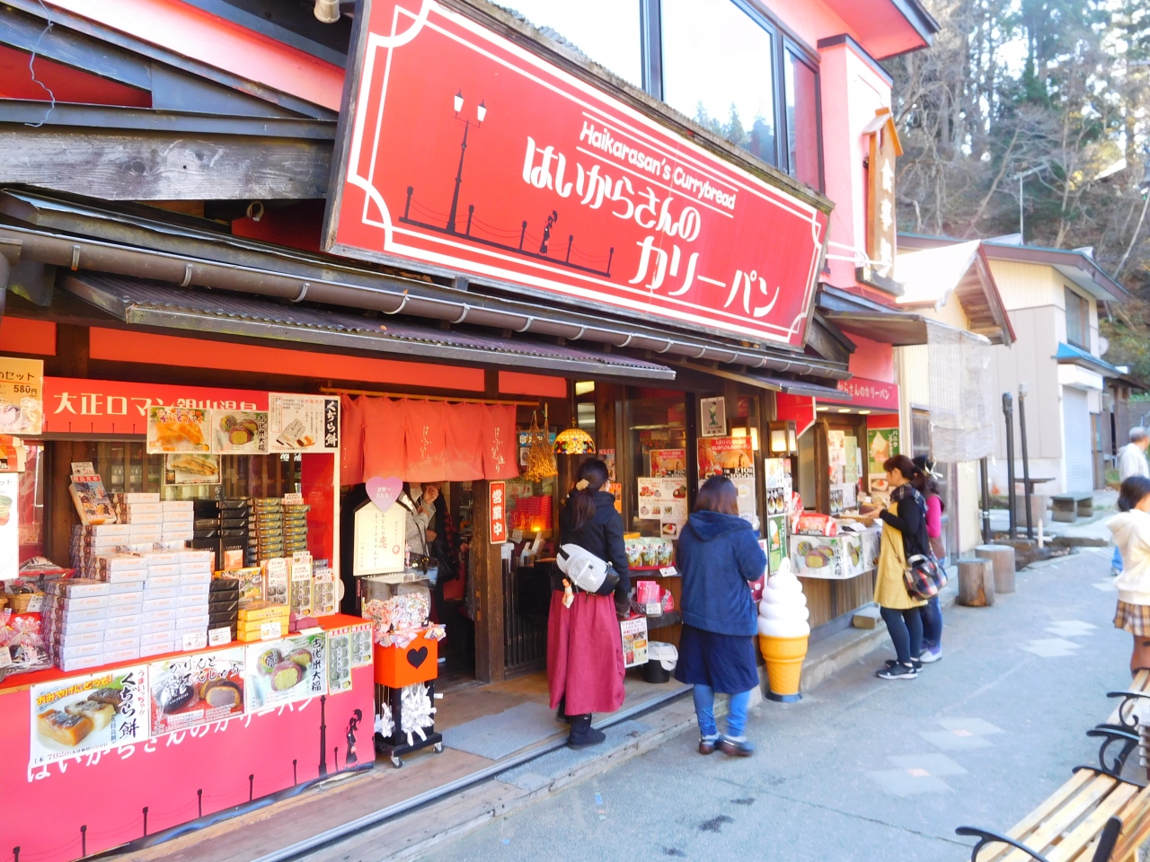 白銀温泉は小さな温泉街ですが、その一番奥の方にあるのが「はいからさん通り」という店です。カリーパンが名物になっています。この店の前の通りをさらに上流に行ったところが白銀公園です。能登屋でおいしいものをおなか一杯食べたのですが、カリーパンも食べてみたかったのでチェックアウトのあとで買い込んで、天童までドライブした後に食べました。おいしくいただきました。