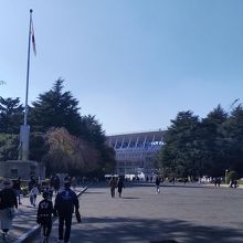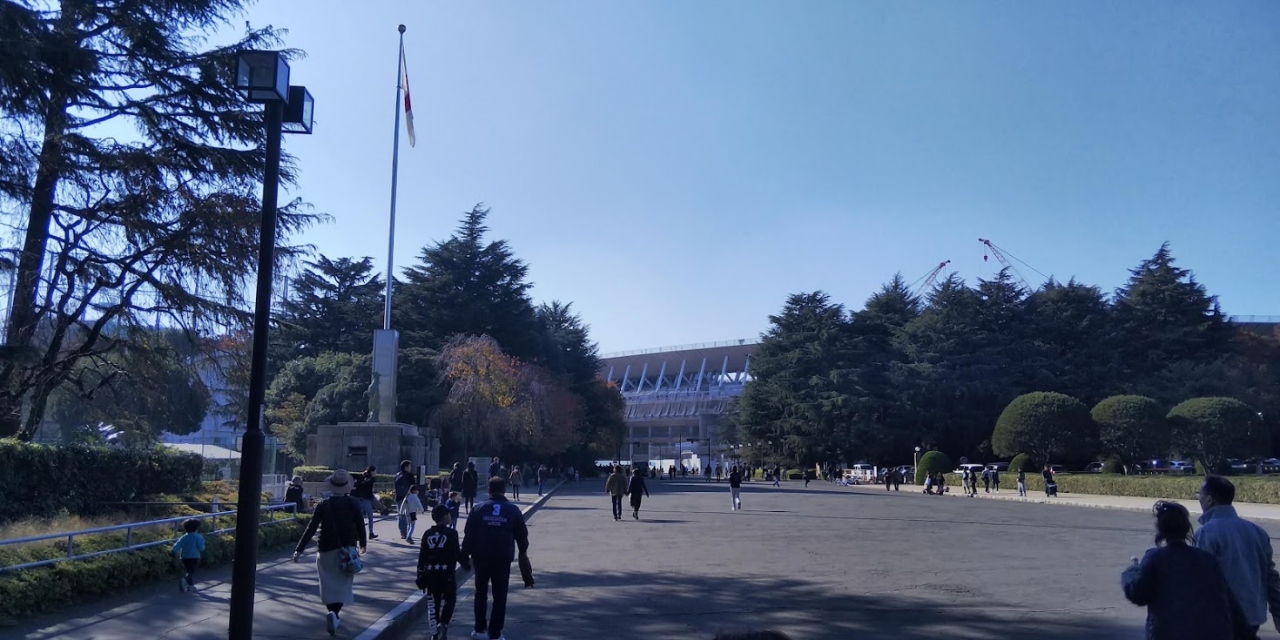 信濃町駅から、神宮外苑のグランドで開催している いちょう祭りに行くために、絵画館の前に来た時に、建設中の国立競技場を見ることが出来ました。工事が始まるとアッという間に解体され、あっという間に外観が立ち上がってきており、見ないうちに大きな建築物が存在感を出し始めている感じになっていました。現在見える外観については、解体前の国立競技場にそっくりに見えました。2年を切ったオリパラまでにどんな姿の変化を見せてくれるか楽しみな感じです。