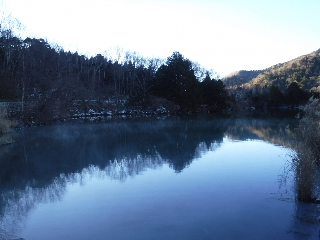 冬の朝は、気温と水温の差ができ、湯煙が幻想的に見えます。